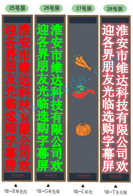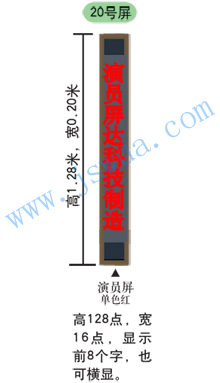 v型系列:高1.74米(192點(diǎn)),寬0.20米(16點(diǎn)),單行顯示,常用字數不超過(guò)14個(gè)字. |